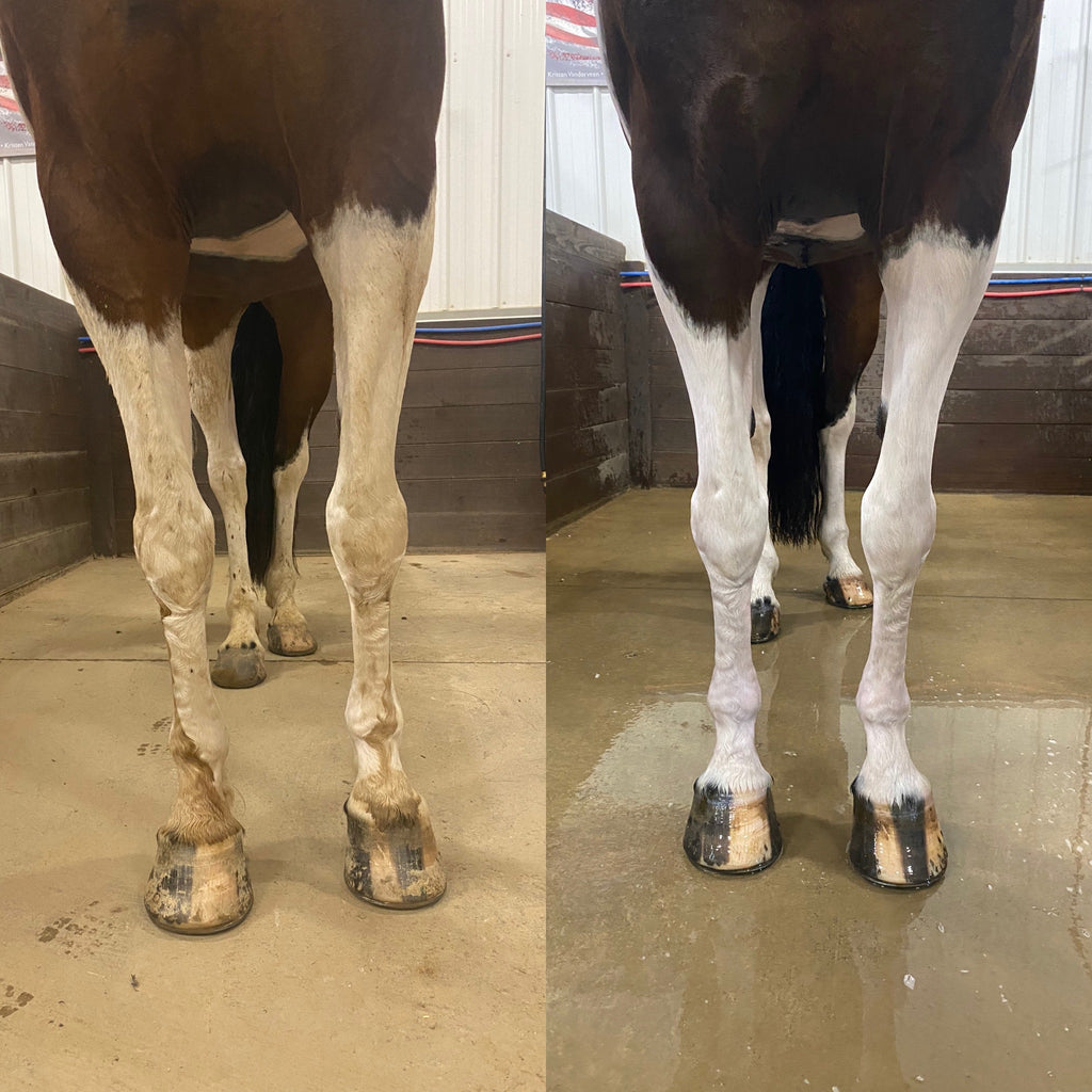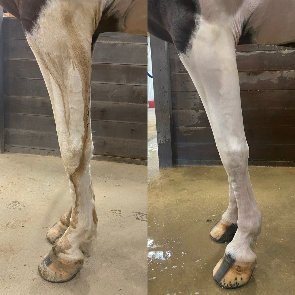 This shampoo was designed with potent whitening dyes to neutralize your horse’s toughest yellow stains.  The foaming dispenser will help to pre-lather and increase the surface volume of the shampoo, which leads to a superior result.