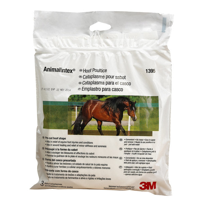 Hoof Poultice - Ideal for cuts, wounds, abscesses, inflammation and hoof conditions. Made of cotton wool impregnated with boric acid antiseptic to promote faster healing and a natural poulticing agent. The occlusive backing helps retain moisture and warmth. Pre-cut in the shape of the hoof, protects the wound from external contamination. Works as a hot poultice for abscesses, boils, cracked heels, laminitis, seedy toe, corns; works as a cold poultice for bruises.