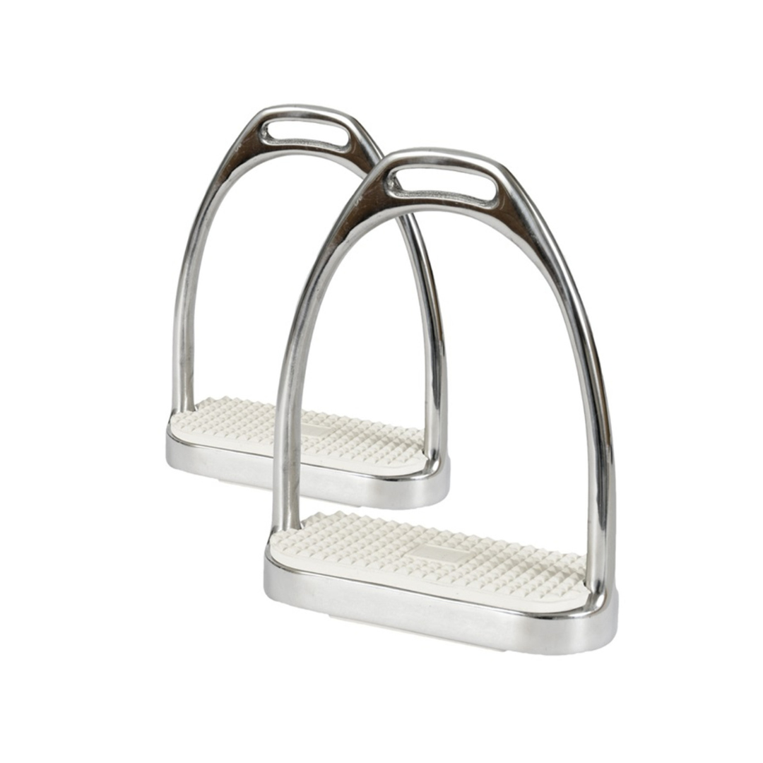 Top quality stainless steel Fillis style stirrups with white or black pads.
