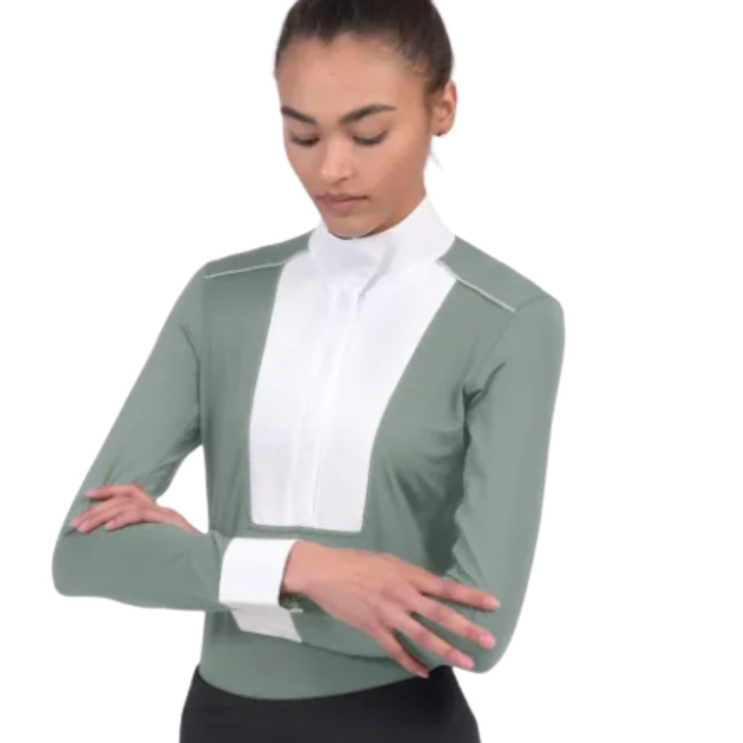 You asked for a SkyCool® Show Shirt and this shirt delivers. Made of the lightest weight fabircs to give you the lightest weight sun shirt ever. Feel the cooling comfort in warm, humid weather conditions by converting sweat into cooling energy so you stay dry and comfortable. SkyCool® fabric is xylitol infused fiber technology for cooling, moisture absorbtion, fast drying, 2-way air circulation and 50+ UV protection. 4-way stretch flat weave fabric offers more stretch and superior comfort. Classic white poplin bib, collar and cuffs lined with unique Liberty® London prints, mesh shoulders, sides and underside sleeve inserts add additional cooling airflow. Pull-over style shirt features a hidden low profile YKK zipper placket and no-show collar and cuff snaps for a polished show look, stock tie loop, shirttail hem and a tailored show fit.
