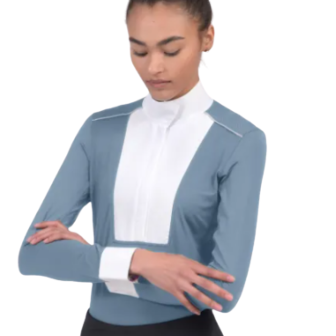 You asked for a SkyCool® Show Shirt and this shirt delivers. Made of the lightest weight fabircs to give you the lightest weight sun shirt ever. Feel the cooling comfort in warm, humid weather conditions by converting sweat into cooling energy so you stay dry and comfortable. SkyCool® fabric is xylitol infused fiber technology for cooling, moisture absorbtion, fast drying, 2-way air circulation and 50+ UV protection. 4-way stretch flat weave fabric offers more stretch and superior comfort. Classic white poplin bib, collar and cuffs lined with unique Liberty® London prints, mesh shoulders, sides and underside sleeve inserts add additional cooling airflow. Pull-over style shirt features a hidden low profile YKK zipper placket and no-show collar and cuff snaps for a polished show look, stock tie loop, shirttail hem and a tailored show fit.
