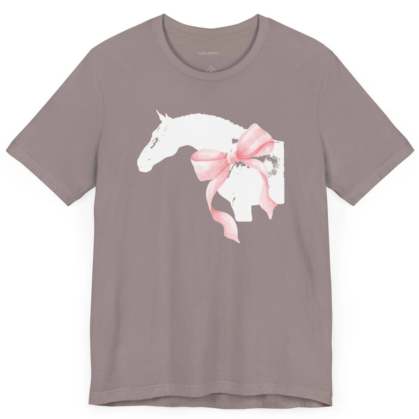 You can never go wrong with a fabulous fitting tee, but we elevated it even more with our charming coquette horse design! Be effortlessly feminine wherever the day takes you. More than on-trend, this tee is crafted of high-quality, super soft and giving fabric. Comfortable, charming and flattering from street to stable and everywhere in between.