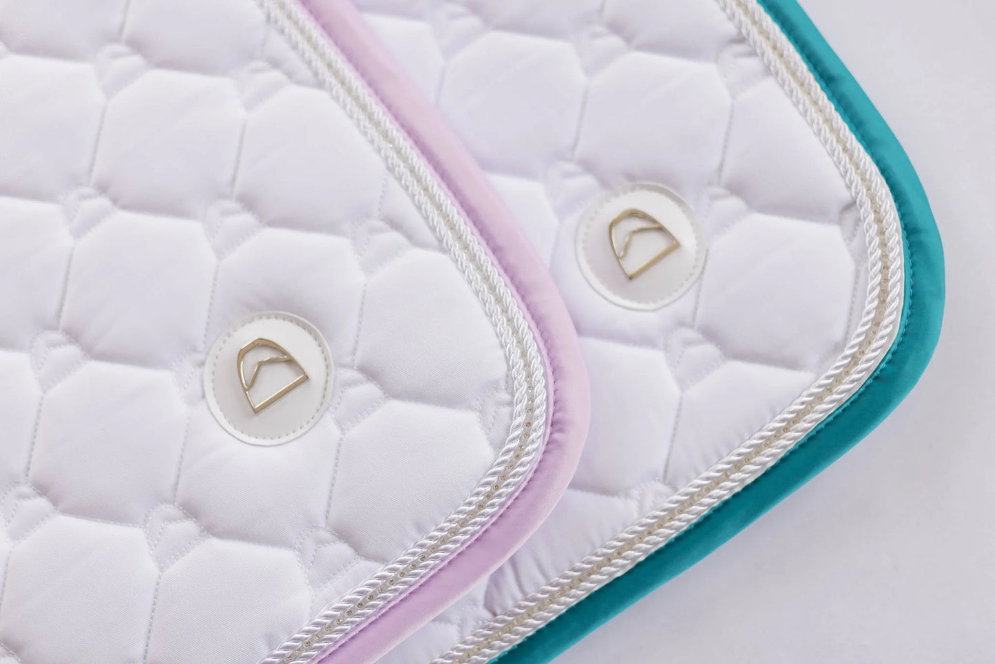 Every adult ammy's dream and old school jumping trainer's nightmare: A crystal trimmed saddle pad.