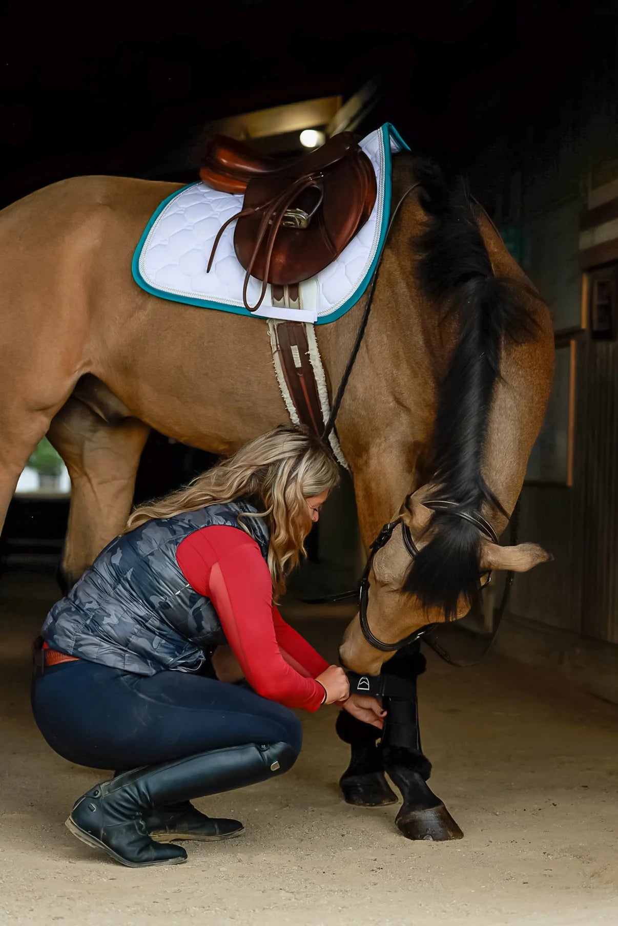 These jump pads were designed with the same care and premium features as our dressage pads. Plus they include a girth guard to protect against long girth buckles and a contoured dee ring loop to keep your saddle in place regardless of your billet length or if you're using a half pad.