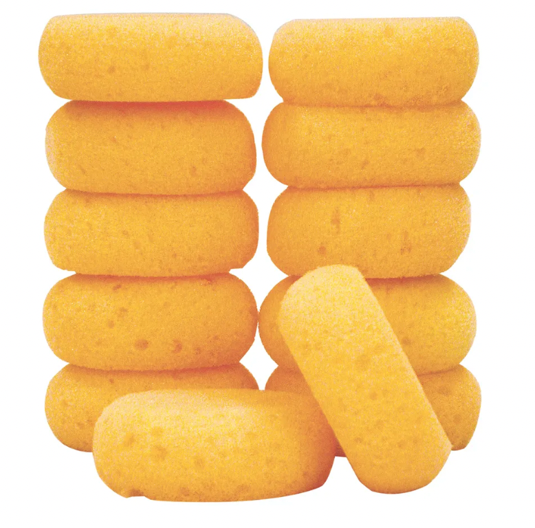 Fine pore, multi-purpose sponge useful for cleaning tack, polishing leather and bathing small crevices in large and small animals. Each sponge measures 2-1/2" x 1".