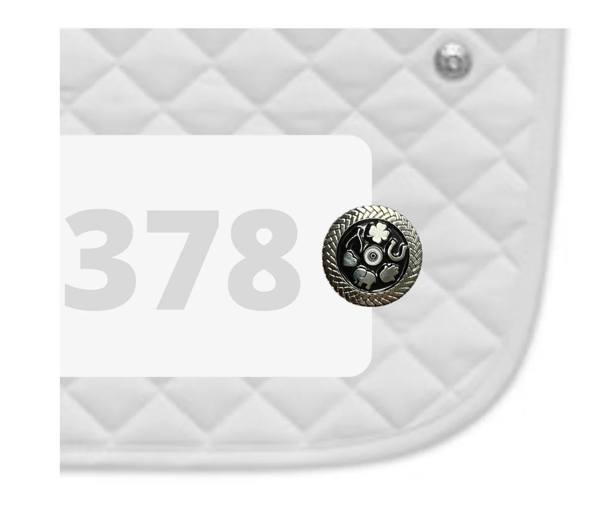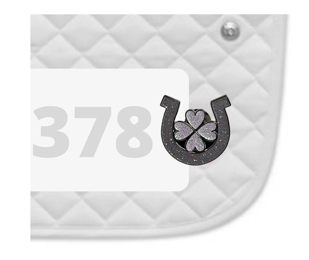 The most polished way to secure your show number to a saddle pad or your back. We also love to wear them on bonnets, baseball hats, and our jacket lapels!