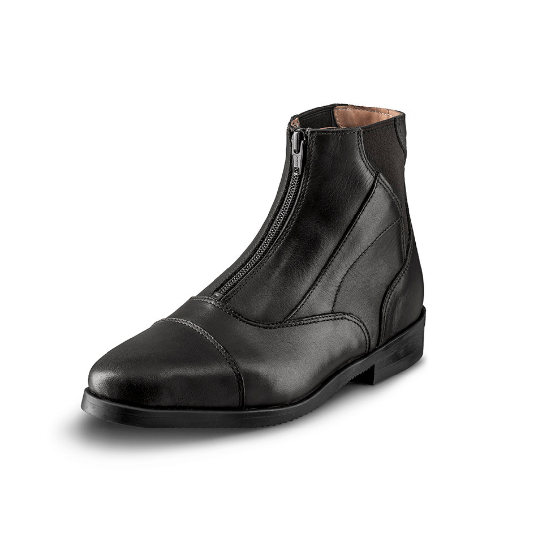 Taurus short boots, with front zipper and sophisticated double-stitched toe cap, are practical and stylish: the elegant leather patchwork follows the foot silhouette. The cushioning around the ankle and the elastic band provide extra comfort, making them easy to wear. This ensures breathability and a perfect slim-fit. Taurus can be matched to Ego7 Lyra half chaps for a sleek result and superior freedom of movement.