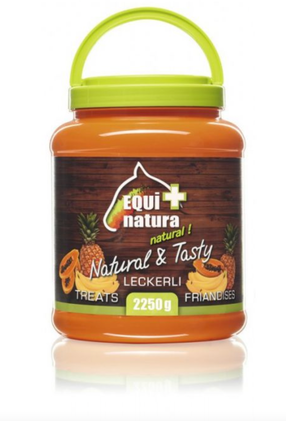 Horse treats from Equinatura. These crunchy treats are made of ripe fruit, rich in nutrients. The treats are produced in Germany in a production process that is as natural as possible. The treats have the taste of banana, pineapple and papaya.