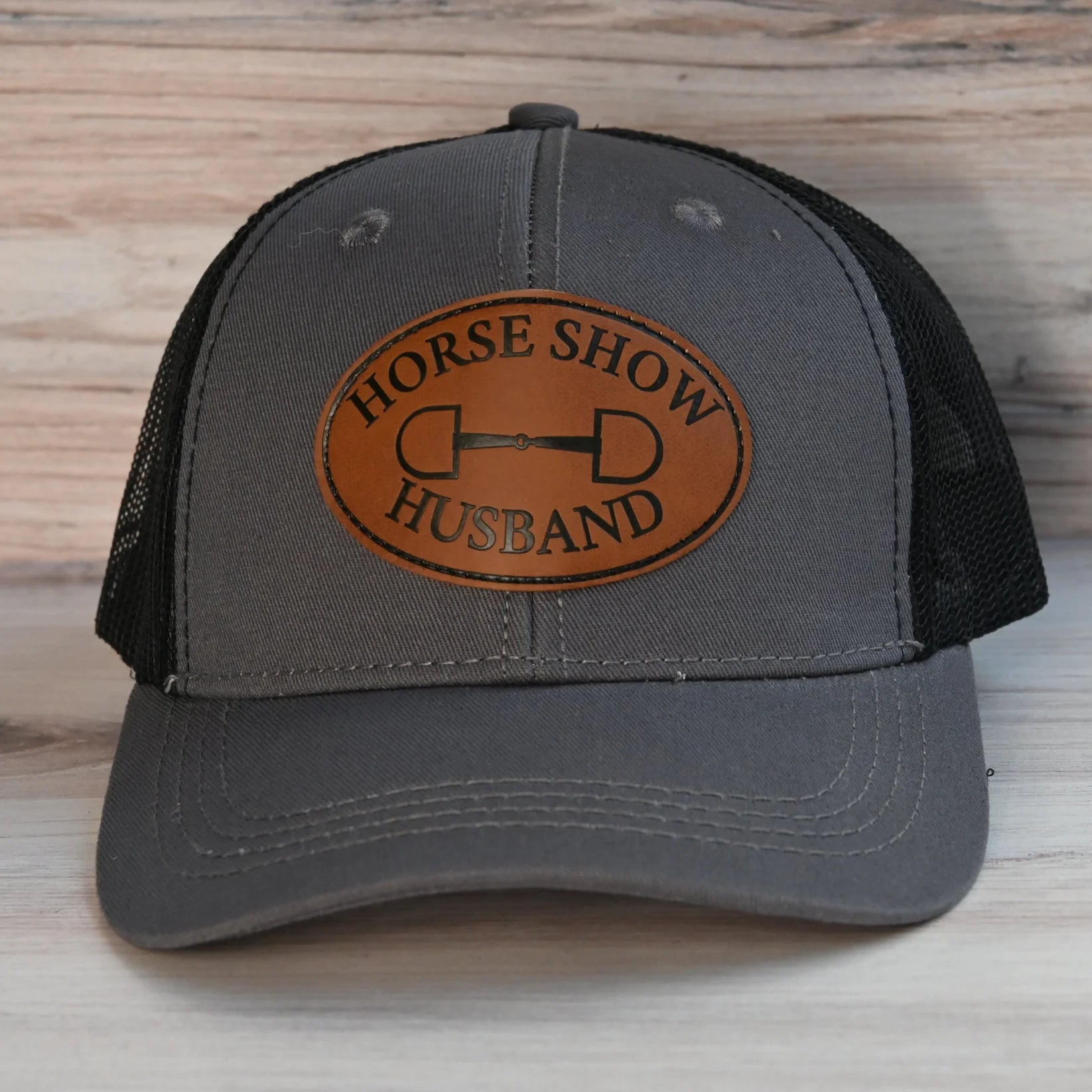 Built for barn days, road trips, and ringside duty, this classic trucker hat is made for the men who show up and show out. It features a breathable mesh back, structured front panels, and an adjustable closure for all-day comfort. The cognac leather patch adds a rugged yet polished finish—perfect for barn dads, grandpas, and husbands who wear their equestrian support with pride.
