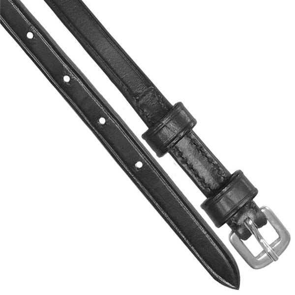 Double keeper leather spur straps are 3/8" wide x 18" long and made of black leather.