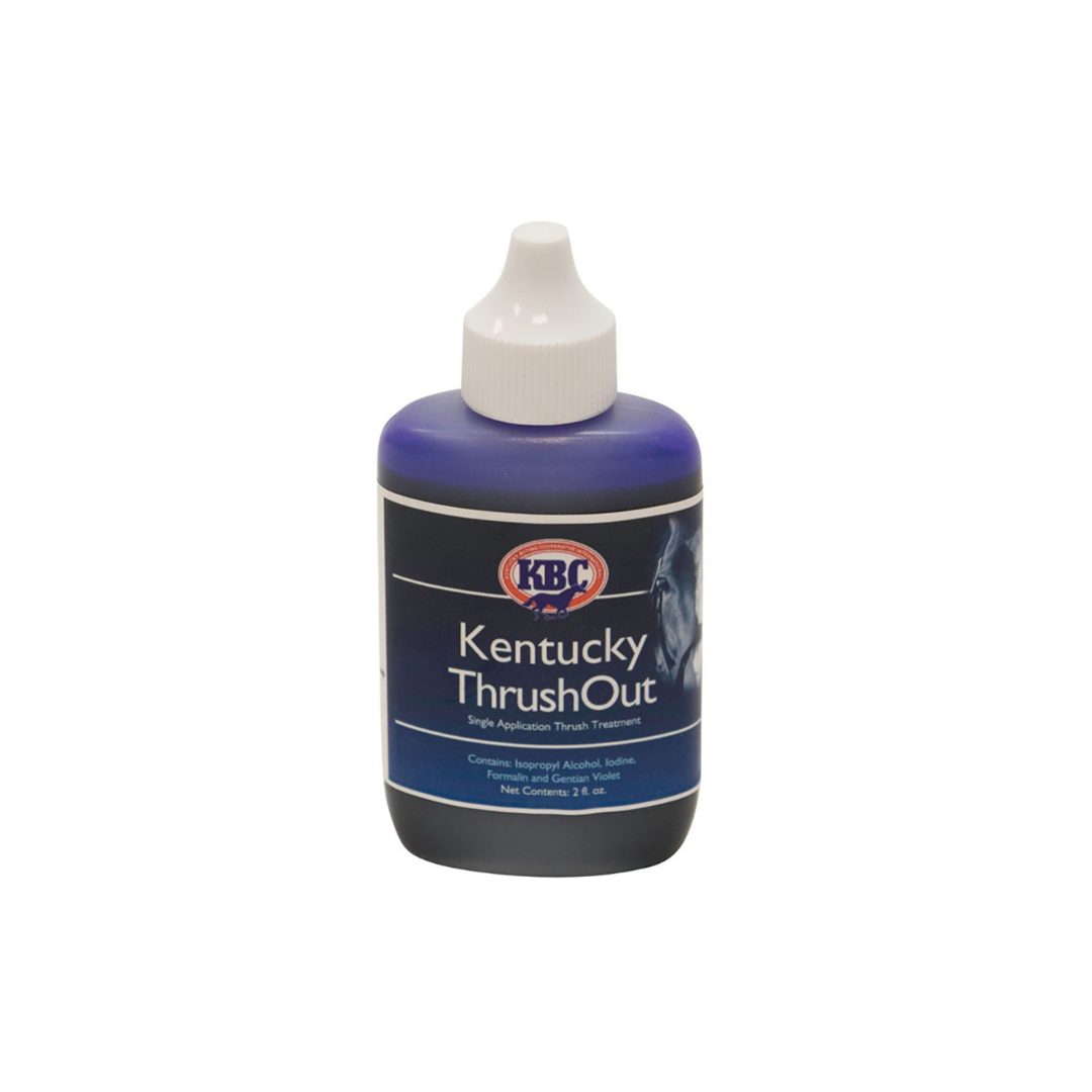 KBC Kentucky ThrushOut is a single-application thrush treatment. A high-quality treatment that contains alcohol, iodine, formalin and Gentian Violet. 2 oz.