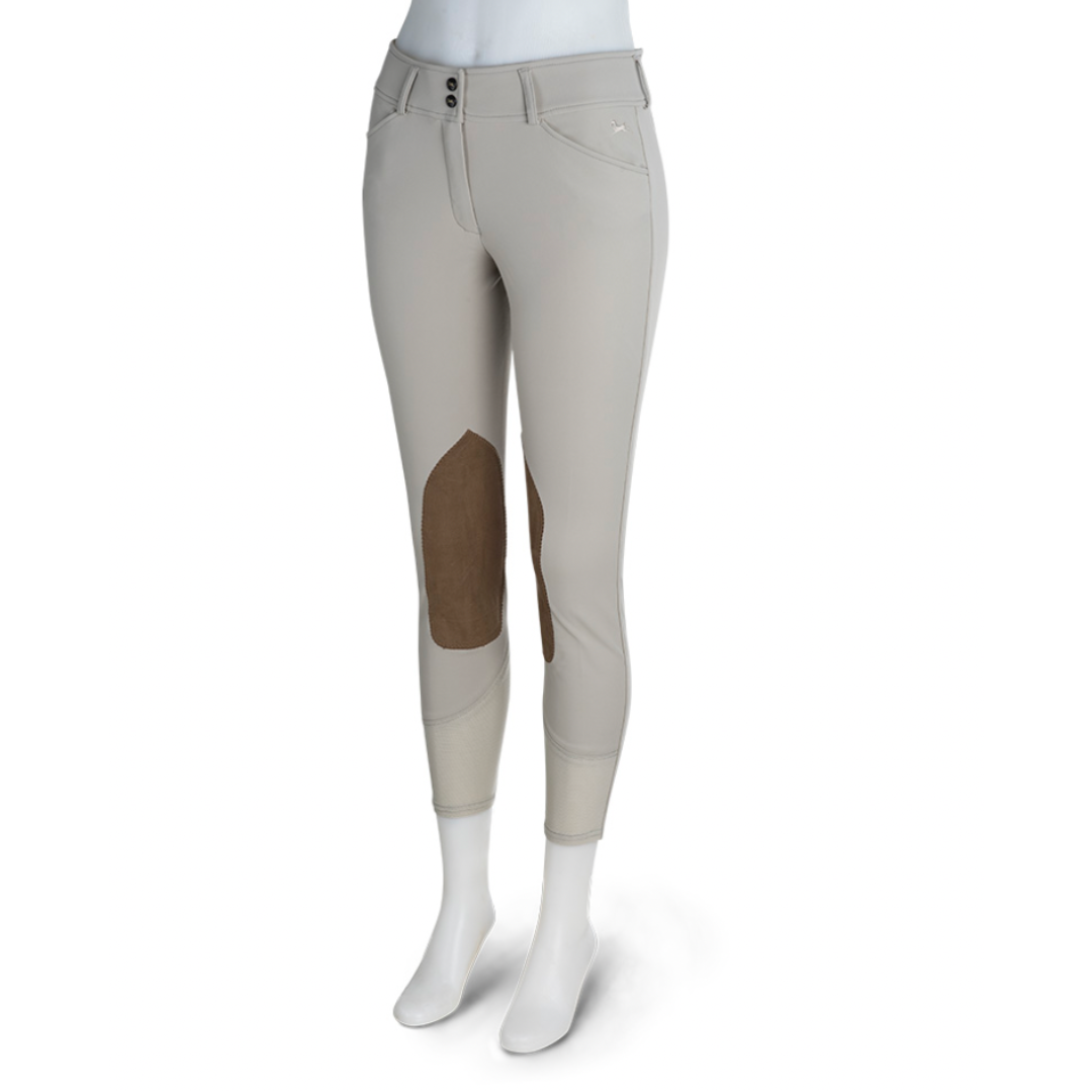 The mid rise front zip Anna model euro seat breech is the pinnacle of fit and comfort, featuring a premium quick dry and stretch fabric which provides amazing hand-feel, sculpt and coverage. The fabric covered interior waistband and mesh lower leg panels provide ideal comfort. Premium Clarino™ knee patches are naturally supple and breathable while presenting the elegant look of real suede, yet it can withstand intense abrasion. R.J. details on the front closures and pocket complete the design.