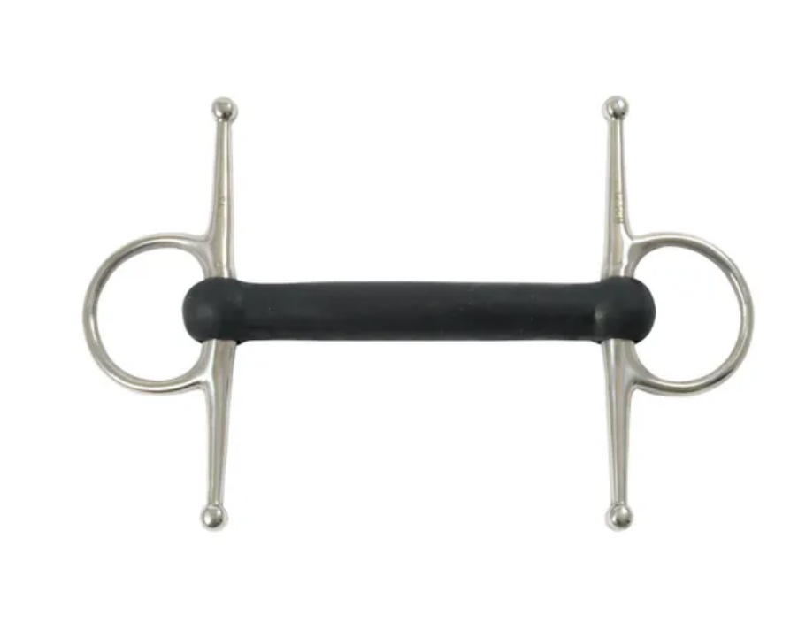 This bit is made from flexible rubber meanging that the mouthpiece is soft and kind on the horse's mouth. Perfect for young horses. The full cheeks aid in steering.