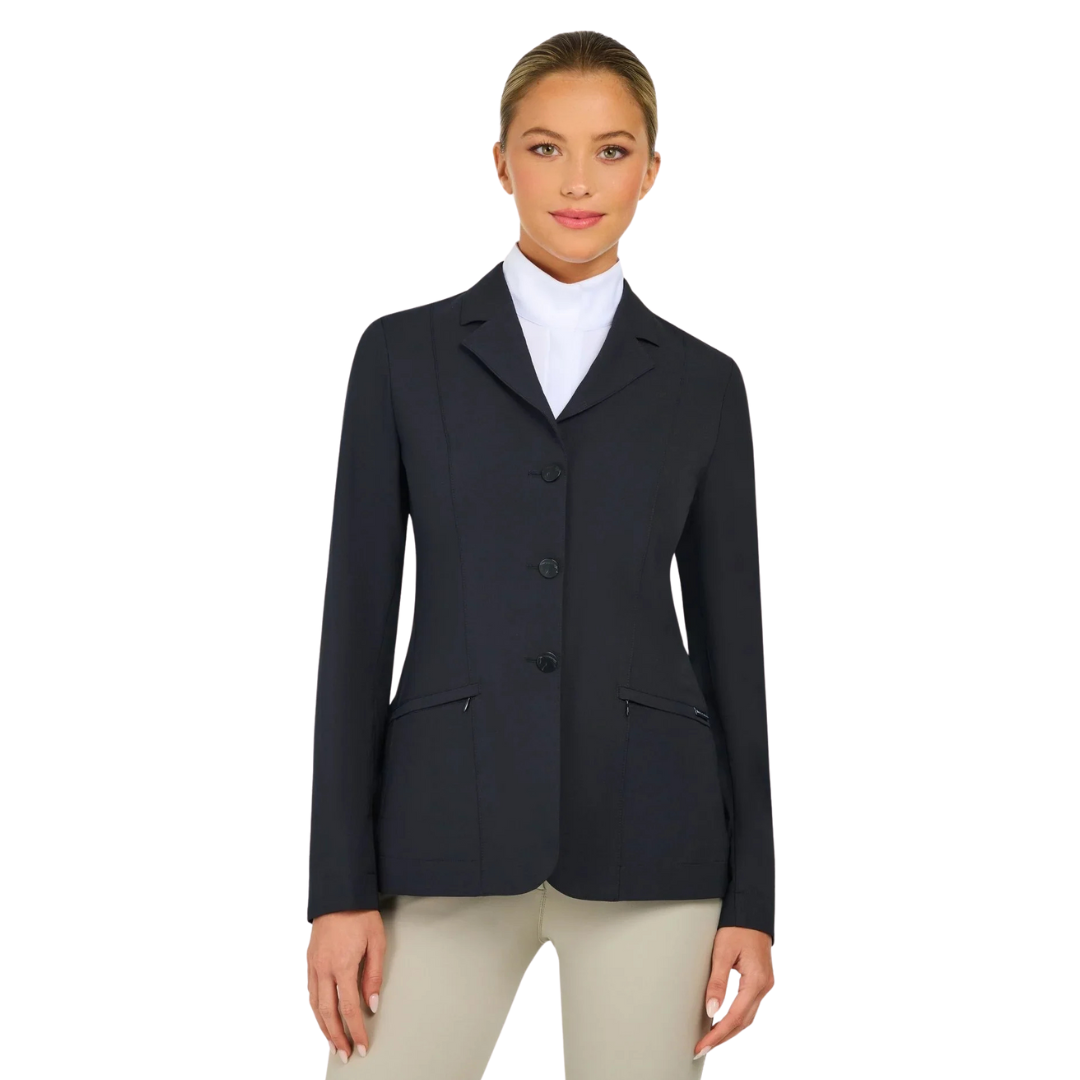 Our brand-new Sloane show coat brings tradition and ultimate comfort at our most accessible price point. Featuring an unconstructed design for freedom of movement and a comfort stretch fabric, you will feel comfortable and confident walking into any show ring. The hidden interior zipper eliminates gapping, while the back number holes neatly tuck your number strings inside the coat. These are just a few of the details that make this a standout style.