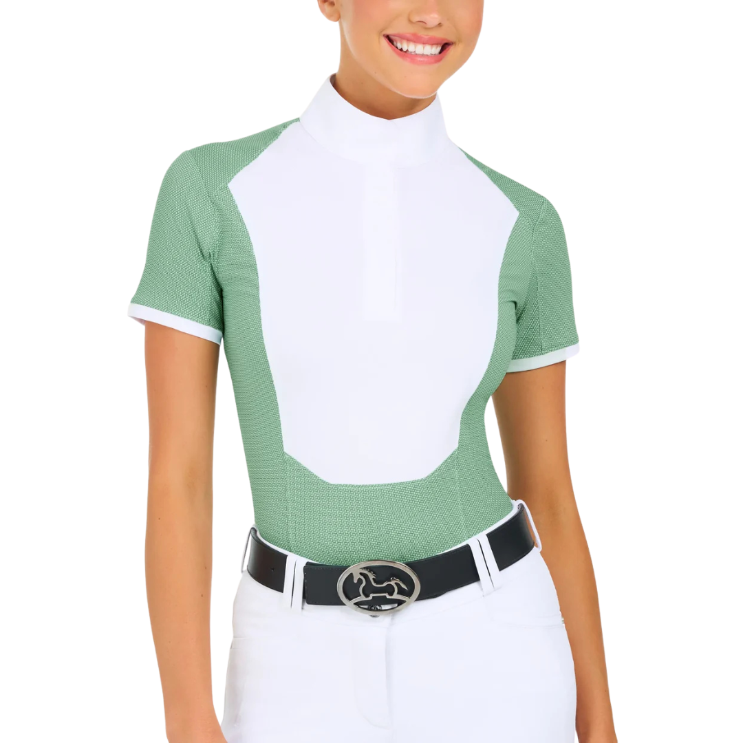Designed to bring extra style and versatility into the show ring, the Tessa is the perfect addition to every rider’s wardrobe. Its modern seam lines and silky, cooling fabric ensures that rider’s stay comfortable and confident. The unique prints, paired with a white collar and front bib, elevate its style without compromising the classic look under a show coat.